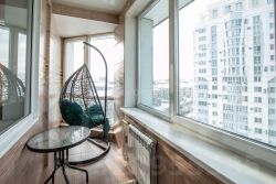 -Застекленная лоджия, где установлены теплые полы и батарея.