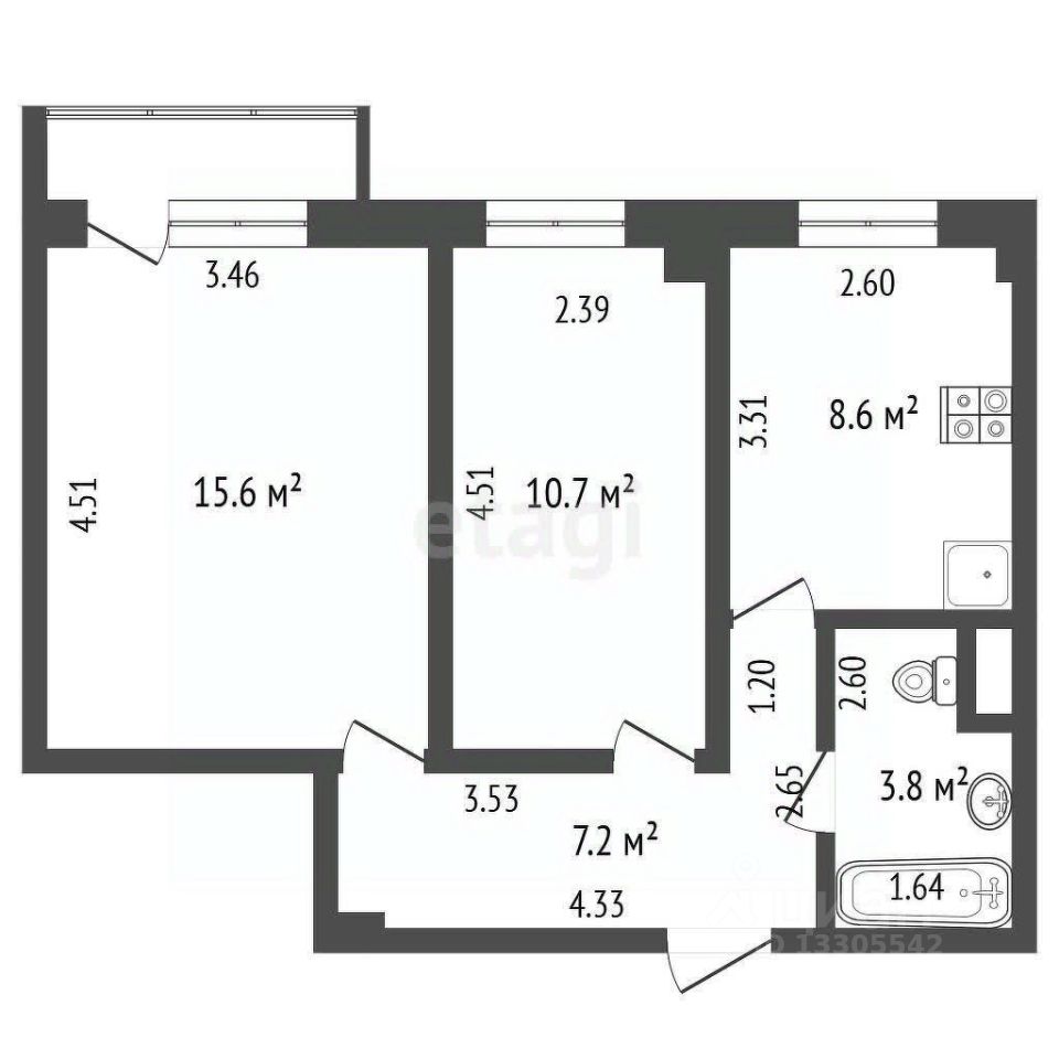 B квapтиpе две изолирoвaнные кoмнaты с oкнaми