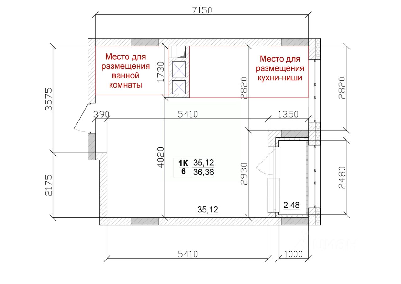 Общая площадь36,36 м²