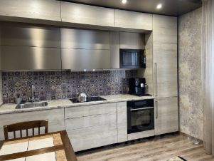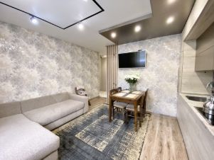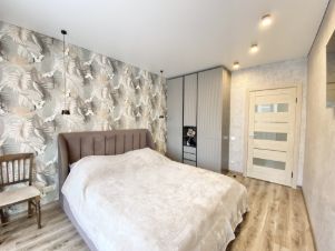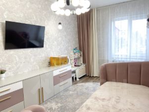 Квартира радует дизайнерским ремонтом, который выполнен с учетом всех современных тенденций. Здесь есть все необходимое для комфортного проживания: удобная мебель и современная бытовая техника. Планировка продумана до мелочей, а совмещенный санузел делает использование пространства особенно удобным. Также в квартире есть лоджия, где можно организовать уютную зону для отдыха.