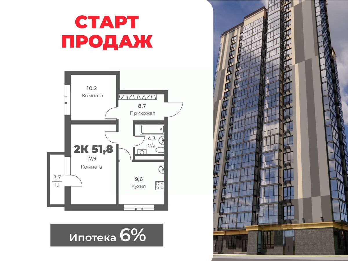 Продается 2-комн. квартира, 51,8 м²