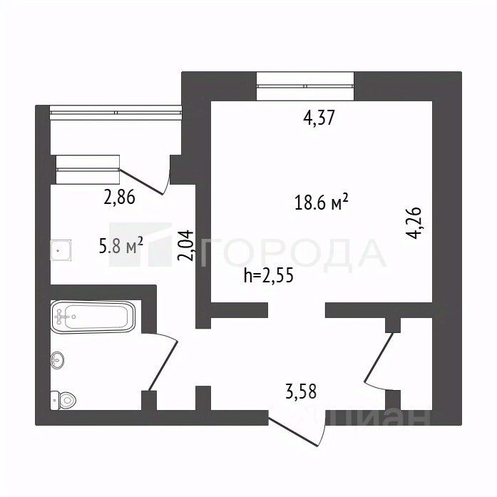 — комната 18,6 м² — легко зонируется