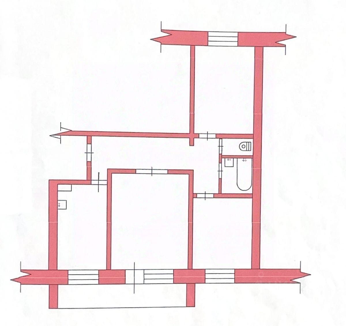 Чугунные радиаторы и железные трубы отопления от застройщика (в хорошем состоянии).Плюс: в одной из спален радиатор и разводка уже заменены на современные.Трубы водоснабжения заменены на новые современные — можно не переживать за протечки.установлены счетчики учета воды.Кухня (большая, прямоугольная):