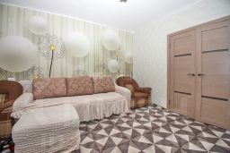 В квартире выполнен косметический ремонт, установлены окна ПВХ, на полу уложен линолеум, стены выровнены и оклеены обоями, недавно заменены все межкомнатные двери. Санузел раздельный, стены в ванной и туалете оклеены обоями. Шикарный квадратный зал 18,4 м идеальное место для семейных посиделок, просторные кухня 8,5 м и спальная комната 12, 4 м. Вместительный балкон без остекления. Большая парковка для автомобиля как во дворе, так и за домом.