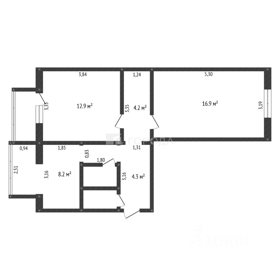 Квартира расположена на четвёртом этаже пятиэтажного дома и отличается просторными комнатами с изолированными пространствами: общая площадь составляет 50,8 кв. м, жилая — 29,8 кв. м, площадь кухни — 8,2 кв. м. Высота потолков 3 метра создаёт дополнительное ощущение простора.