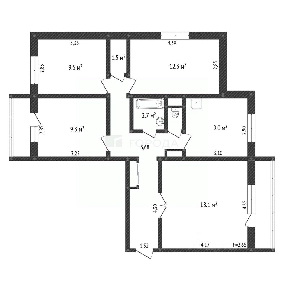 - Отопление центральное.