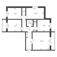 Общая площадь квартиры составляет 77 кв. м, из них жилая — 49,2 кв. м. Здесь достаточно места для всей семьи. Комнаты изолированы, что обеспечивает комфорт и уединение. Два балкона — отличное место для отдыха.