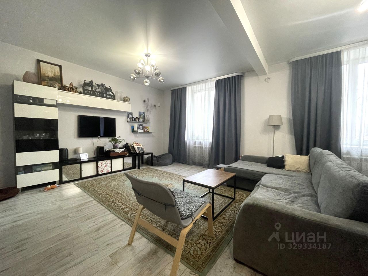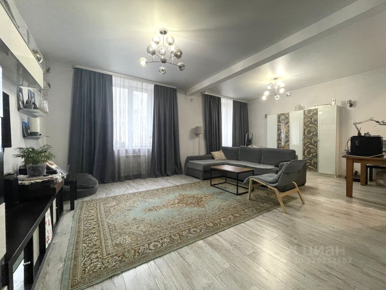 Уютная гостиная, сочетает в себе прекрасное место проведения всей семьей, а в дневное время, работать, не покидая домашней обстановки. На полу ламинат с максимальным уровнем защиты (не страшны царапины и влага).