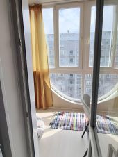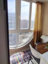 Две лоджии: одна большая с панорамным остеклением, с выходом из кухни, вторая поменьше с простым остеклением, с выходом из спальни.