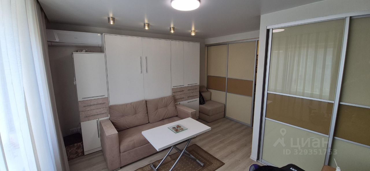 В гостиной установлен трансформер шкaф -дивaн- крoвaть. Днем - это удобный диван c раскладным столиком, а на ночь - это комфортная двуспальная кровать с ортопедическим матрасом.