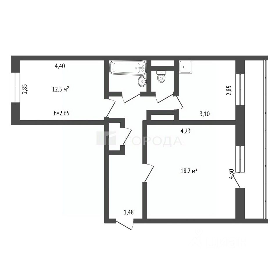 -Площадь: 54,3 кв. м (жилая 30,7 кв. м, кухня 9 кв. м)