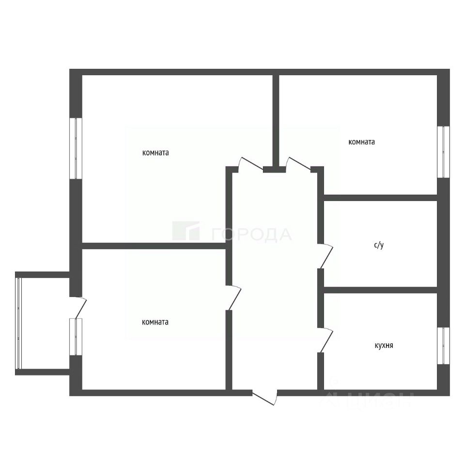 • Квартира трех комнатная, раздельной планировки;
