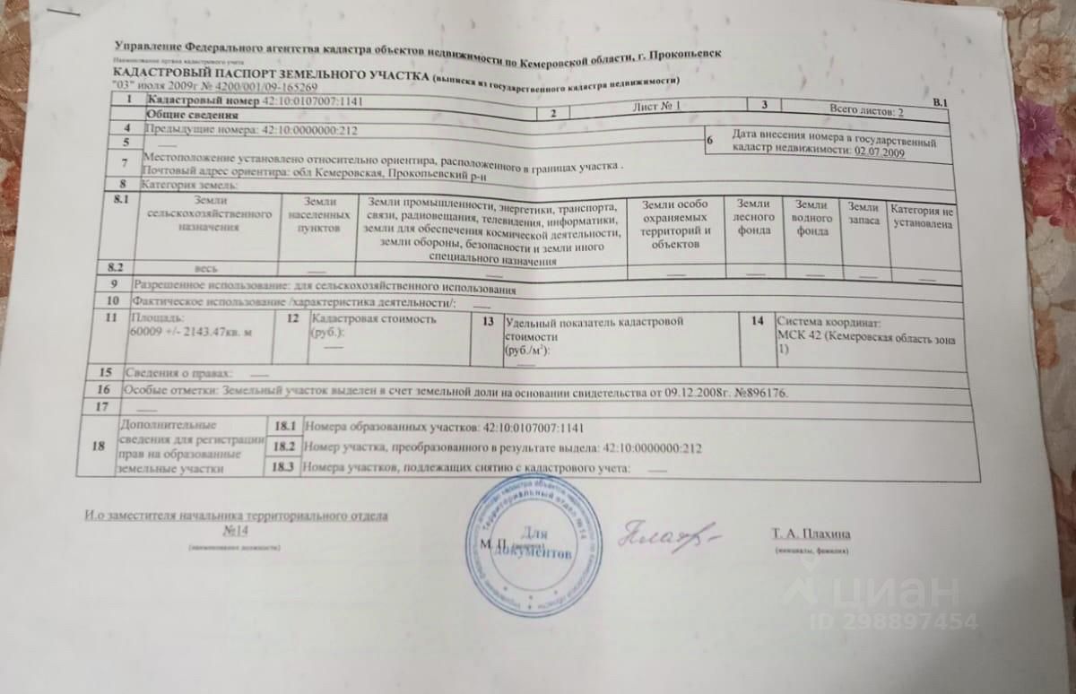 Кадастровый номер участка 42:10:0107007:*** указал продавец