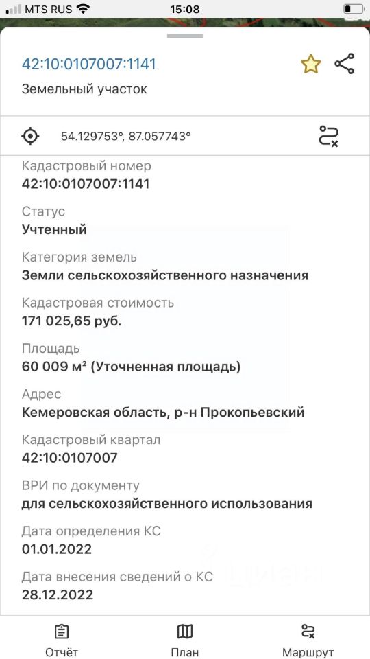 Кадастровый номер 42:10:0107007:1141