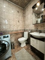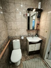 - Санузел совмещенный душевая и унитаз, стены и пол из кафеля