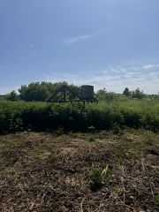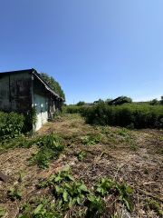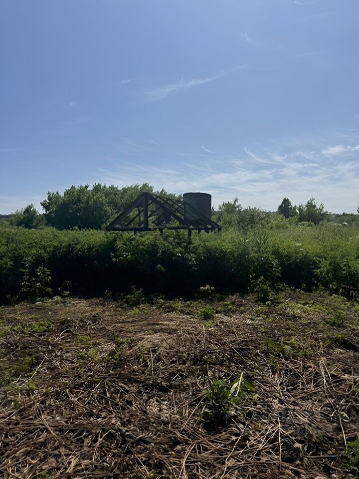 Удобренная земля, две мeтaлличecкиe тeплицы нa фундамeнтe.