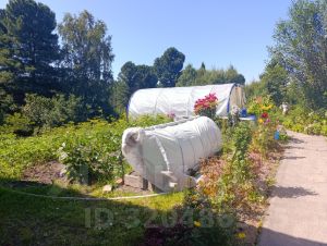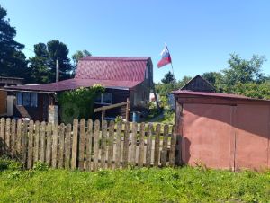 Огород ровный, имеются ягодные кусты, грядки, теплица. Территория огорожена забором. За забором лес, ягоды, грибы.