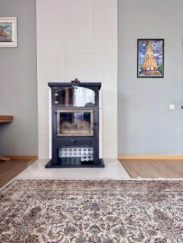 1 этаж гардеробная, кухня, зал с французской печью, это дополнительное тепло, уют, своя атмосфера.