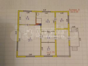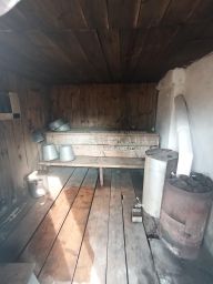 Этот одноэтажный дом, построенный в 1981 году, имеет общую площадь 56,1 кв. м и включает три комнаты с жилой площадью 35,2 кв. м. Дом построен из бруса, а перекрытия — деревянные. Высота потолков — 2,75 м, что создаёт ощущение простора и свободы. Пол, стены, потолки ровные, установлены пластиковые стеклопакеты. Сан узел и душевая кабина расположены в доме.