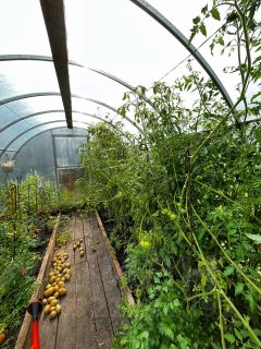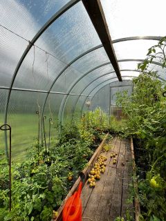 Участок: Большой двор, огород с малиной, клубникой, яблонями и другими посадками. Есть теплица.