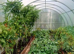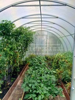 На участке установлена большая теплица, множество различных посадок, плодоносящих кустарников.
