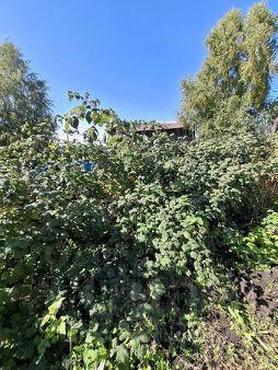 Участок ровный, земля чернозём, имеются кусты малины, смородины, черноплотки, много кустов крупной и сладкой вишни.