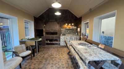 В летней кухни в теплое время года проведено водоснабжение, есть мангал, газовая печь.