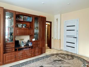 Три жилых комнаты(смежно-изолированные),кухня,санузел совмещённый, ремонт косметический,свежий:потолки матовые натяжные,пол-линолеум,стены выровнены, окна все -стеклопакеты, два бойлера (один на 80 литров).Кухонный гарнитуром выстроенной бытовой техникой,идёт бонусом новым владельцам,радиаторы все новые.