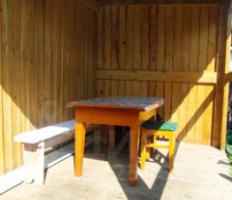 Отличная новая баня из кругляка (2023 года постройки), терраса для отдыха и хозяйственные постройки, для хранения, все под одной крыше, все новое.
