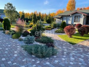 Ландшафтный дизайн. Участок очень зеленый , рулонный газон с системой автоматического полива, футбольное поле, зона воркаут + беговая дорожка 90 м. Много хвойных деревьев и кустарников .