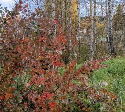 На участке черноплодка, ирга два дерева, смородина черная, жимолость .
