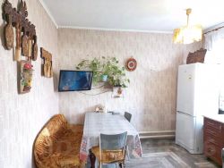 Косметический ремонт. Окна ПВХ, натяжной потолок, на полу настелено ковровое покрытие.