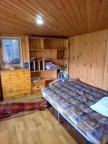 Стены отделаны вагонкой, на полу ламинат.