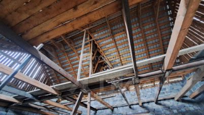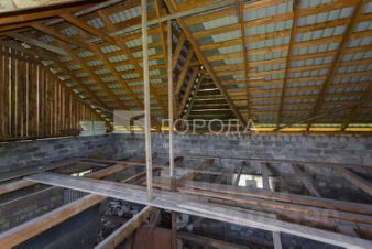 Хороший потенциал для второго этажа, крыша покрыта металлочерепицей. Канализации нет, участок ровный, неблагоустроенный.