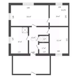 Внутри дома три комнаты, большой зал и просторная кухня. Электричество подведено по всему дому, есть централизованное холодное водоснабжение.