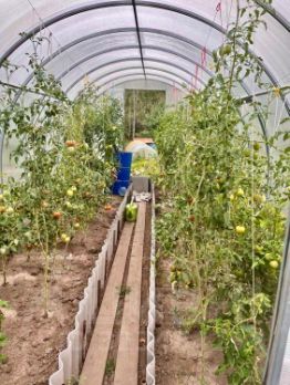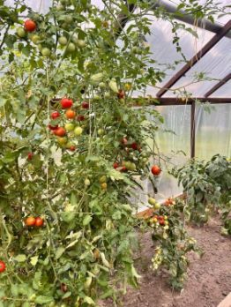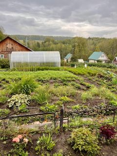 Огород большой, ухоженный. Посадки: ирга, 3 куста черной смородины, 1 куст белой и 1 куст красной. 5 кустов жимолости. 2 теплицы.