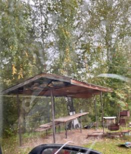 Рядом с участком установлена беседка (мангальная зона) и удобное парковочное место для нескольких автомобилей.