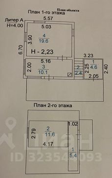 На 2-ом этаже: комната 11,6 кв.м.с выходом на балкон, коридор 5,4 кв.м.