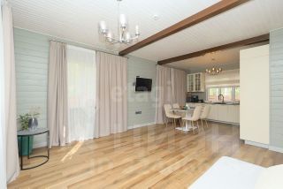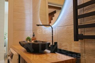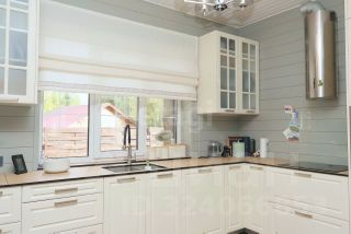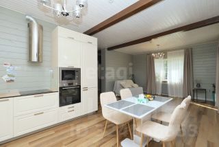 Использованный профилированный( не клееный) брус толщиной 22 см обеспечивает высокую теплоизоляцию и долговечность конструкции. Материалы премиум-класса, включая краску Tikkurila, подчеркивают стремление владельца к качеству и экологической чистоте жилья.