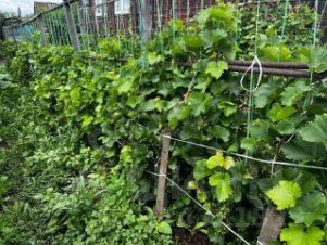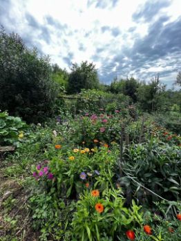 В огороде посажены два ряда винограда, плодоносит, вызревает. Деревья яблони, груши разных сортов. Малина, юрга, жимолость, крыжовник, черная смородина, клубника, черная рябина и другие.