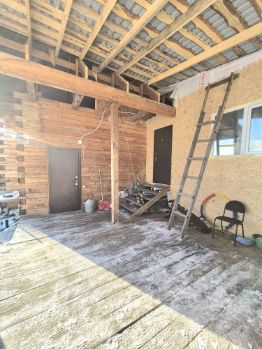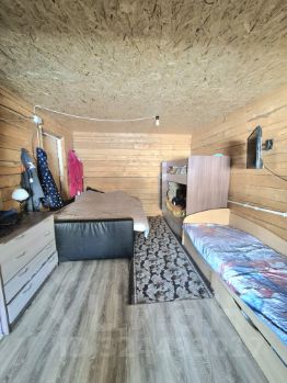 Продаем не достроенный дом / дачу . Первая часть дома построена и оформлена в 2022 году ,вторая часть дома в 2025 ( еще не оформлена ) Земля в собственности .Дом на винтовых сваях .Пластиковые окна .Брус 150150 ,каркас с утеплителем( базальтовый ) в 3 слоя ,Проводка проведена ,установлен счетик .Вода в доме ( скважина 67 метров ,вода идеальная .2,5 куба в час ) глубинная подстанция .Слив временный ,есть место под септик .При продаже оставляем материал на второй этаж ( утеплитель ,окна ) .Залит фундамент под кательную .На участке маленький гараж под инструменты .По всему участку посажен газон ,растет : слива ,груша ,яблоко ,крыжовник ,смородина вишня ,клубника ,цветы ,две голубые елки ,сосны и березы .Остается теплица 73 .Осенью по участку лезут сьедобные грибы .Через дорогу сосновый лес с грибами и ягодами.Дом расположен в доль асфальтированной дороги .Остановка в шаговой доступности .Не далеко есть школа ,детский сад ,магазины .Один взрослый собственник .Есть ограничение, снимем при продаже.