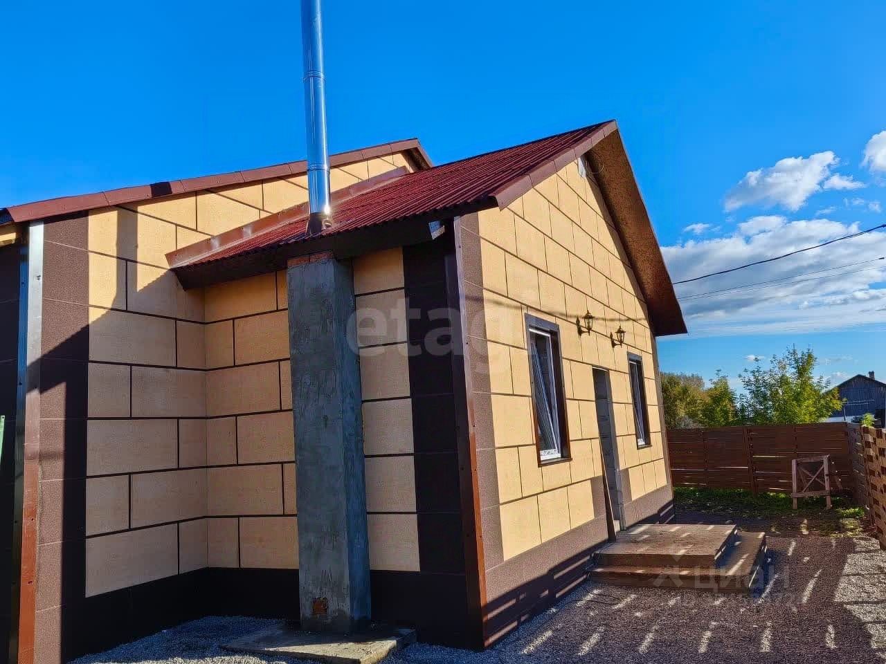 Коттедж отапливается от автономного котла. Фасад дома сделан из термопанелей мраморной крошки. Возле дома выведена газовая труба, можно провести газ в коттедж.