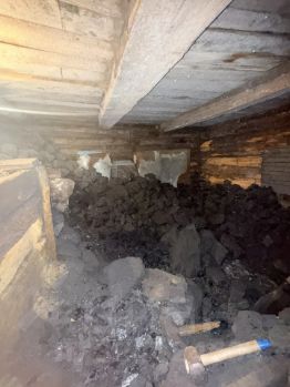 - Крыша — профлист, сохранность кровли хорошая. Дом устойчив, несмотря на возраст — не перекошен.