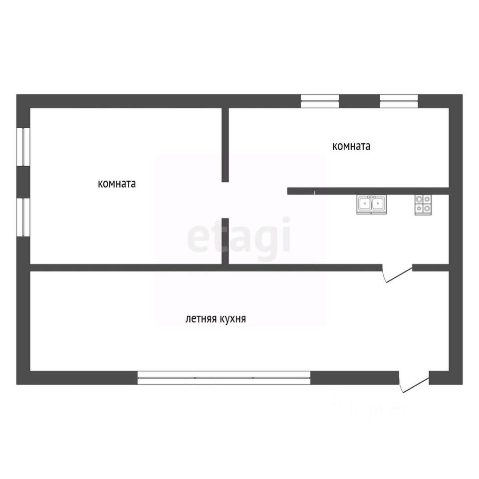 В доме расположено 2 комнаты, небольшая кухня,летняя кухня.