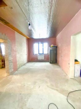 Стены в зале отделаны декоративной штукатуркой, остальные стены выровнены. Пол залит бетоном, а потолок утеплён и звукоизолирован. Окна пластиковые. Система отопления с новыми радиаторами уже установлена, а котёл расположен в гараже. Водоснабжение централизованное.