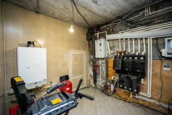 На Цокольном этаже: 2 котла отопления электрический и газовый, бойлер, система очистки воды, подсобные помещения, мастерская, кладовая комната. Водоснабжение централизованное, канализация- септик. в 2025 году будут проводить газ.