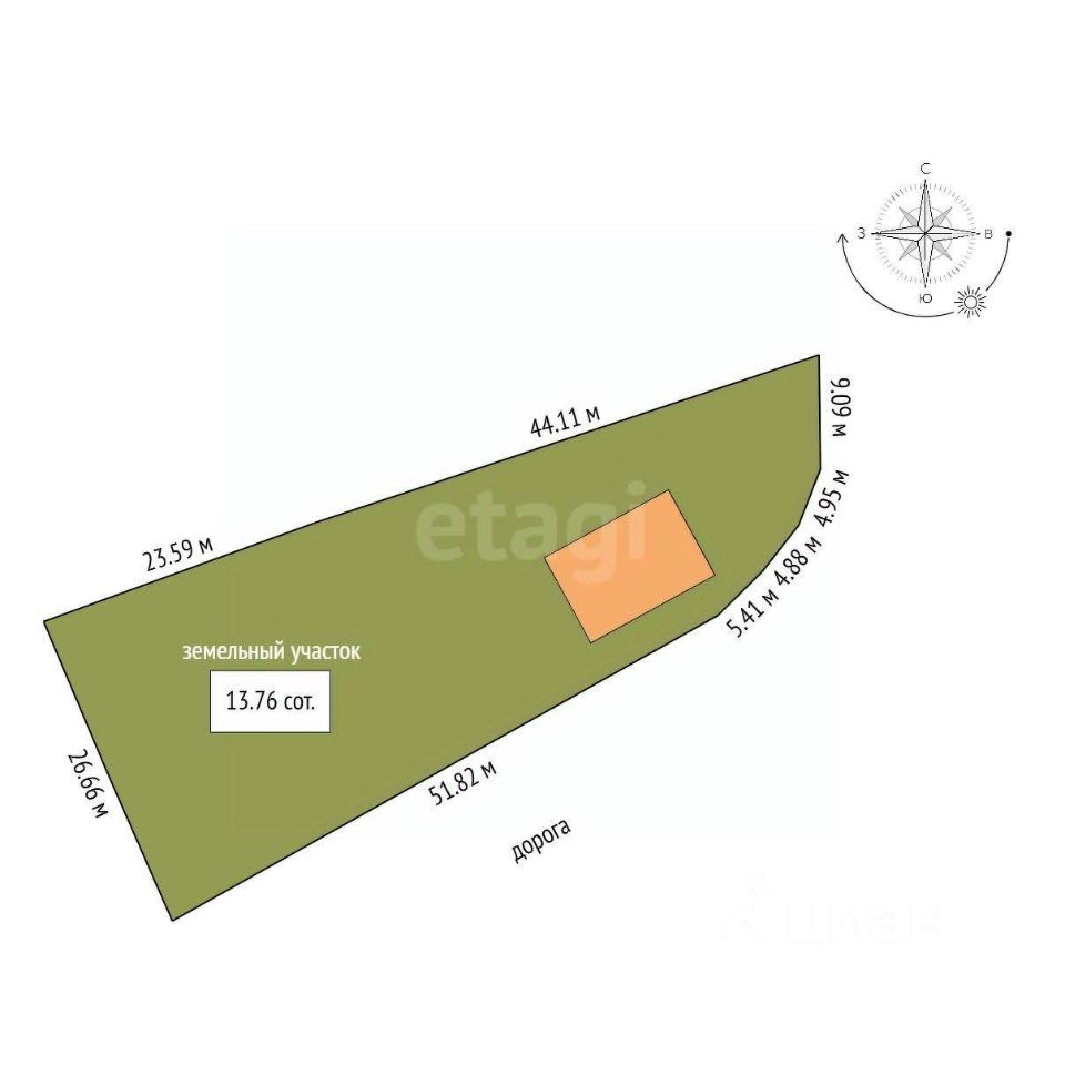 • Участок: 13,76 соток (ровный, ухоженный)