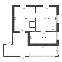 В доме две комнаты и кухня .