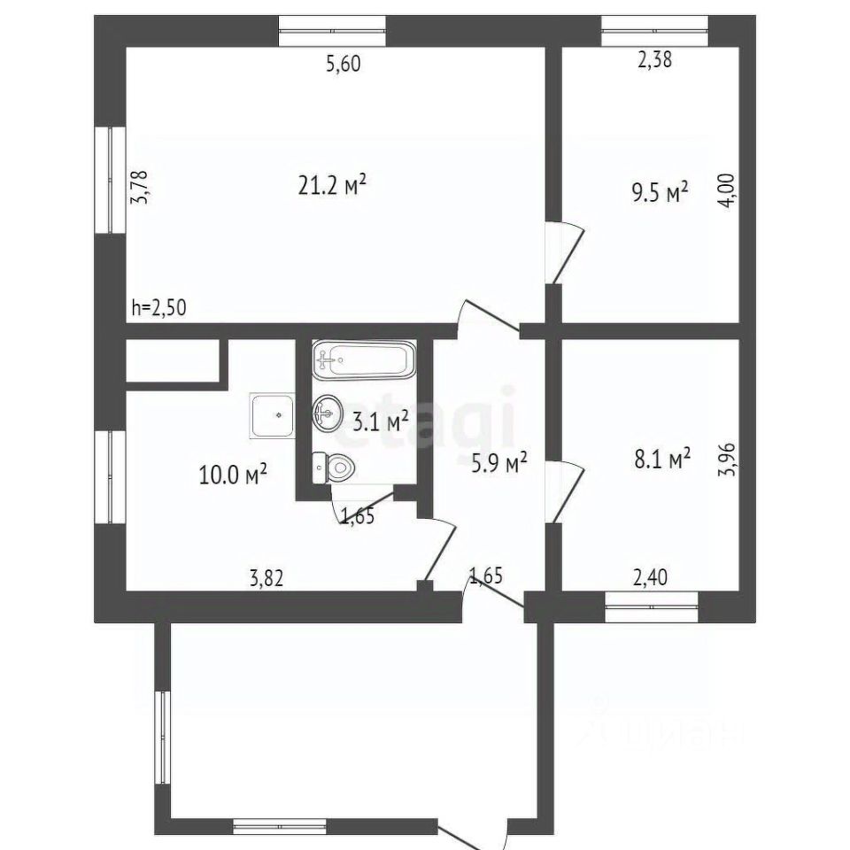 Общая площадь 57,8 кв.м. жилая 38,8 кв.м., кухня 10 кв.м. в доме 3 комнаты + кухня, ванная с сан/узлом ,+ веранда 16 кв.м.