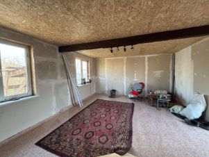 Участок — 5 соток. После внесенных изменений в ЕГРН на дом, площадь его будет 120 кв.м. по документам. На участке есть железный гараж. Имеется готовый брус для строительства бани, ее только собрать.